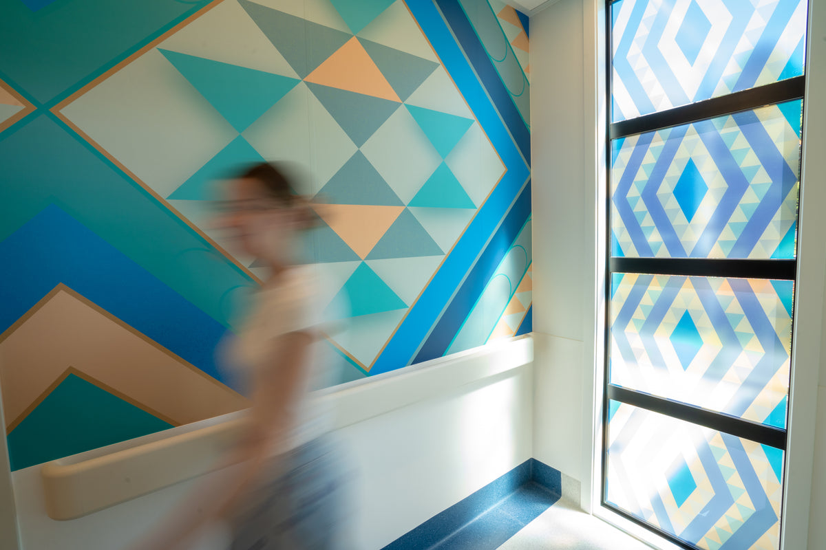 YDS Studio creates healthcare graphics and murals that transform hospitals and clinics into calm, welcoming spaces for patients, families and staff. Our sustainable, award-winning designs support wellbeing and enhance every healthcare environment.