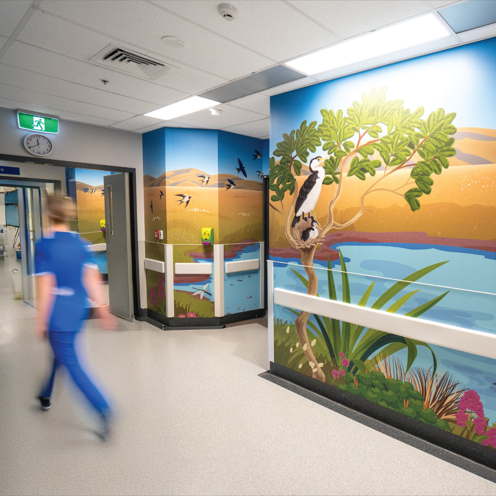 Design-led murals, wall graphics and wayfinding signage that create calm, welcoming environments for patients, families and staff.